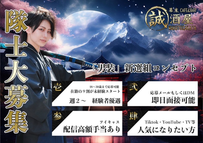 #秋葉原 #男装カフェ #誠酒屋 #男装バイト #求人募集 https://t.co/PSm5aw1dd1