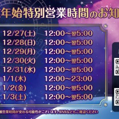 | 営業時間 | 月〜木:17:00-23:00 金・祝前日:17:00-翌朝5:00 土:12:00-翌朝5:00 日・祝日:12:00-23:00 | ||||||||||||||