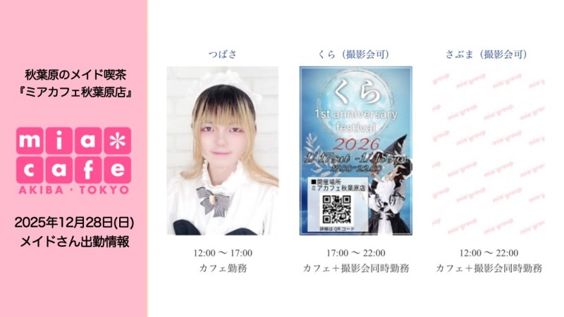 👑本日12月28日(日)のミアカフェ秋葉原店