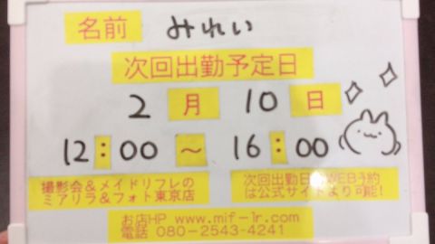 ミアリラ&フォト東京店のみれいです。次回の出勤日は2/10となっております(*゚▽゚*)またのご来店をお待ちしております。 https://t.co/oUawY5b5JA