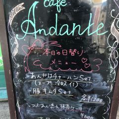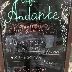 営業時間 平日15時〜22時。土日祝12時〜22時。不定期で営業時間が変わる場合がございます。詳しくは下記スケジュール表をご確認下さいhttp://andante.jp/ftschedule221/schedule.cgi