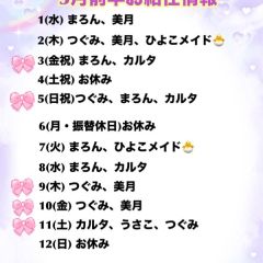 本日はつぐみ、みつき、まろんでお給仕いたします(*☌ᴗ☌)。*゚