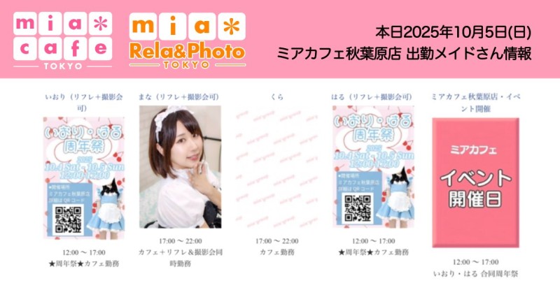 👑本日10月5日(日)のミアカフェ秋葉原店