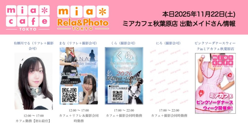 👑本日11月22日(土)のミアカフェ秋葉原店