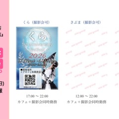 | 営業時間 | 平日 17:00〜21:00(平日営業はお客様が増えてきたら随時開始) 土日祝日 12:00〜21:00(オープン当初は金曜・土日祝日のみの営業予定) | ||||||||||||||