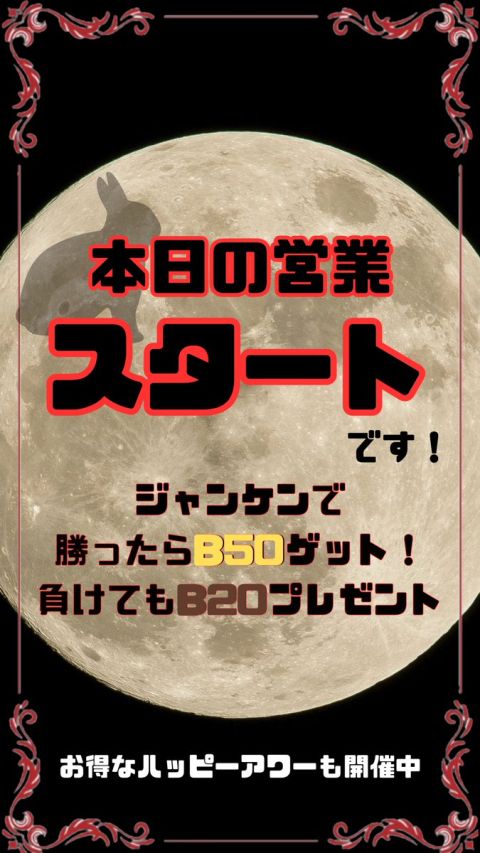 | 営業時間 | 営業時間:20:30から翌3:00 | ||||||||||||||
