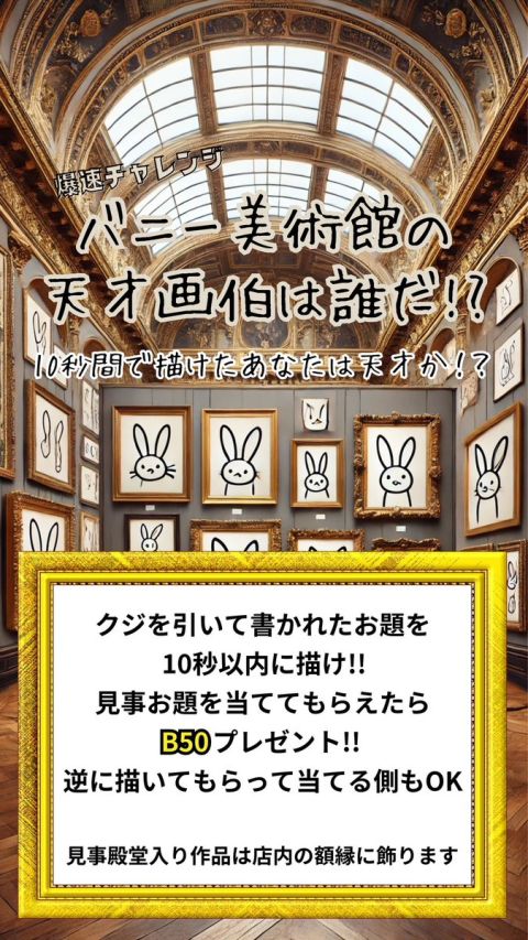 さらに、本日限定「爆速チャレンジ!バニー美術館の天才画伯は誰だ!」クーポン発動中🎨💥