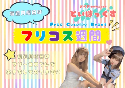 ★毎週(月)はフリコス週間★ 7月11日から毎週、月曜日はキャストがフリーコスプレでお待ちしております!! キャストそれぞれが毎週自由にコスプレできる日! 皆さんのご要望も実現するかも!? 月曜はぜひトイボックスへ(*´ω`) https://t.co/O7elyHRzQL