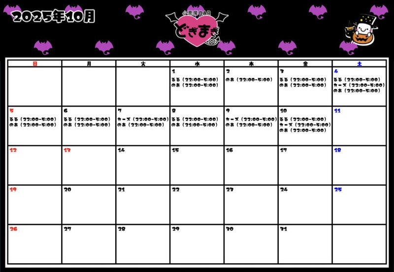 😈10月✞✟出勤予定表😈