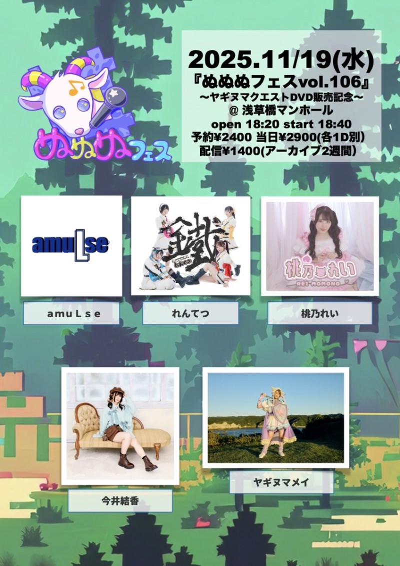 @upt_festival @akb_manhole 11/19(水)『 ぬぬぬフェス vol.106』~ヤギヌマクエストDVD販売記念~