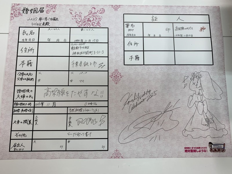 ãã®ã¢ã€ãã«ããŸã¡ã¡ãããšå©å§»é¢ä¿ãçµã¹ãïŒå©å§»å±ããç»å ŽïŒããªãã髿¶ç·ã®ååãç¶ããããïŒïŒãã¶ã€ã³ãããããããã®ã¯ãã¶ãã¡ããã蚌人ã«ïŒ