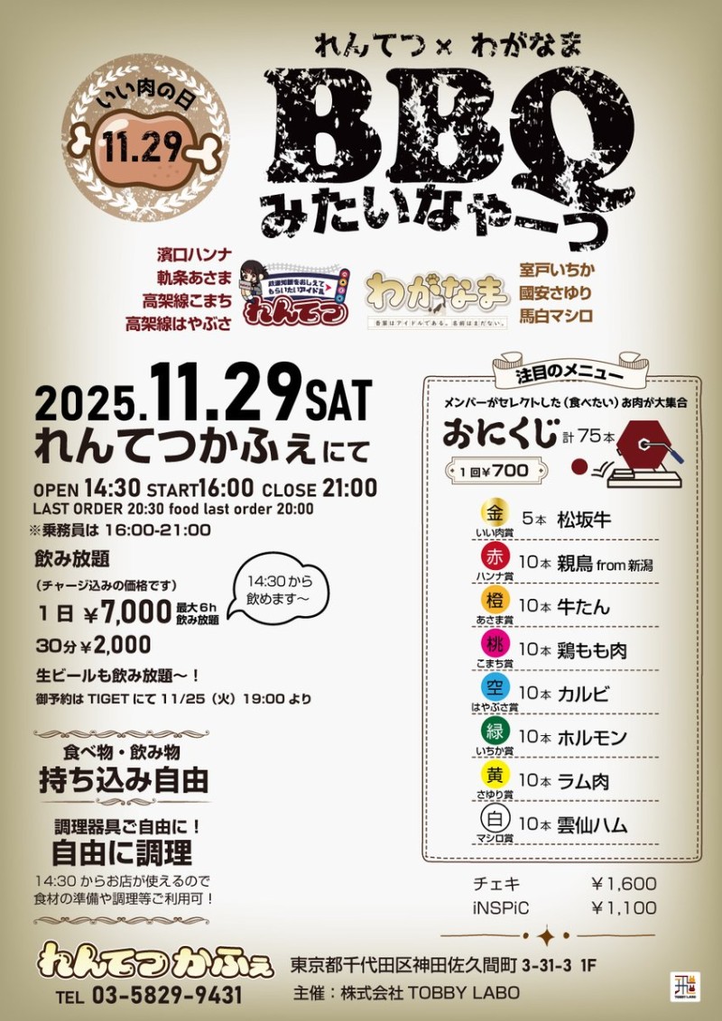 11/29(土)れんてつ×わがなま「BBQみたいなやーつ」