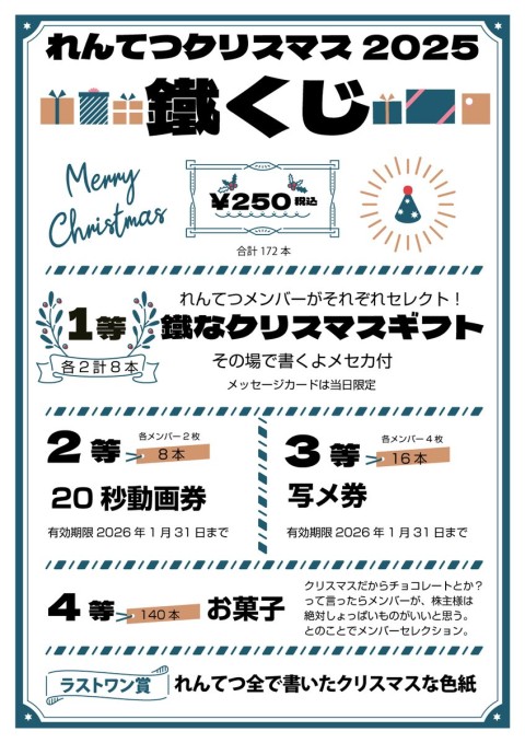 🚃タむムテヌブル公開🚃 12/21日『IDOL ADVENTURE』 📍䞭野坂䞊S.U.B ⏰OPEN11:00START11:15 🎀17:10-17:35 📞18:30-19:30終挔埌 🎫(前売り)S4,000円䞀般A2,500円孊生B1,500円 圓日各1,000円UP ※別途1D 🔗https://t.co/jVJviJx5np クリスマスな衣装🎄クリスマスくじ¥250 https://t.co/Wzsl15AjIN