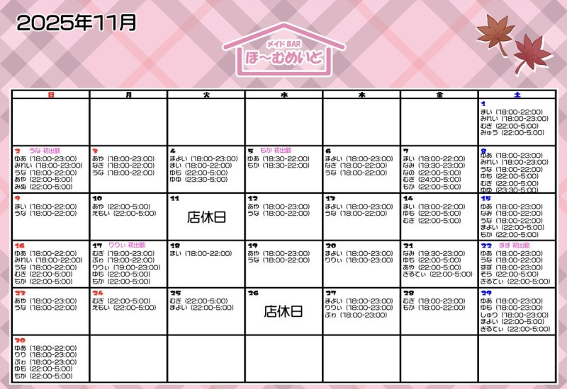| 営業時間 | 18:00-5:00 | ||||||||||||||