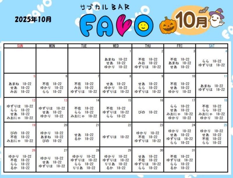 | 営業時間 | 平日 18:00〜24:00 週末 18:00〜5:00 | ||||||||||||||