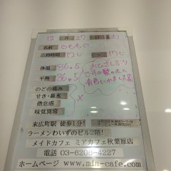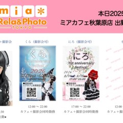| å¶æ¥æé | âãã¢ã«ãã§æ±äº¬åºïŒã¡ã€ãã«ãã§ïŒhttp://www.mia-cafe.com/ãâ â¡å¹³æ¥ãæïœéãïŒïŒïŒïŒïŒïœïŒïŒïŒïŒïŒ â¡åæã»æ¥æã»ç¥æ¥ãïŒïŒïŒïŒïŒïœïŒïŒïŒïŒïŒ â å®äŒæ¥ããªãïŒ2019幎1æããå®äŒæ¥å»æ¢ïŒ â¡ã©ã¹ããªãŒããŒãéåºã®ïŒïŒåå ãïŒïŒïŒïŒïŒéåºã®å ŽåâïŒïŒïŒïŒïŒã©ã¹ããªãŒããŒ å¶æ¥æ¥ãåºå€ç¶æ³ã«ã€ããŠã¯ãã¡ãã http://pandaland.cutegirl.jp/mif/c_cms_csv/sch_top.php âãã¢ãªã©ïŒãã©ãæ±äº¬åºïŒæ®åœ±äŒïŒãªãã¬ïŒhttp://www.mif-lr.com/ãâ â¡å šæ¥ãïŒïŒïŒïŒïŒãïŒïŒïŒïŒïŒãã§ãããªã©ã¯ãŒãŒã·ã§ã³åºå€ã¹ã¿ãããããæé垯ã®ã¿å¶æ¥ã§ãã â å®äŒæ¥ã¯äžå®äŒïŒåºå€ã¹ã¿ãããããæé垯ã®å¶æ¥ïŒ â¡æçµåä»ãéåºã®ïŒïŒåå ãïŒïŒïŒïŒïŒéåºã®å ŽåâïŒïŒïŒïŒïŒïŒïŒïŒïŒïŒïŒè¿ã«æœè¡æéãçµããã³ãŒã¹ïŒ â»é«æ ¡çäžå¯ âæ·±å€å¶æ¥ã«ã€ããŠã¯ãå ¬åŒãµã€ãå³äžã® http://market.chu.jp/schedule1/sche37.cgi ãã¢ã°ã«ãŒãç·åã¹ã±ãžã¥ãŒã«ïŒïŒ°ïŒ£ã»ã¹ããïŒ http://market.chu.jp/schedule1/sche37.cgi?dm=1 ãã¢ã°ã«ãŒãç·åã¹ã±ãžã¥ãŒã«ïŒã¬ã©æºåž¯ïŒ ãã芧ãã ãããåç¥æ¥ã®ã¿å¶æ¥ãšãªããŸããåç¥æ¥ä»¥å€ã¯æ·±å€å¶æ¥ããããŠãããŸããã æ·±å€å¶æ¥å¯Ÿè±¡æ¥ãïŒïŒïŒïŒïŒãç¿æïŒïŒïŒïŒïŒïŒ¬ïŒïŒ¯ïŒïŒïŒïŒïŒïŒ | ||||||||||||||