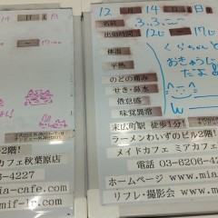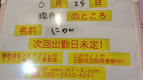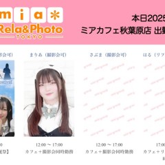 | å¶æ¥æé | âãã¢ã«ãã§æ±äº¬åºïŒã¡ã€ãã«ãã§ïŒhttp://www.mia-cafe.com/ãâ â¡å¹³æ¥ãæïœéãïŒïŒïŒïŒïŒïœïŒïŒïŒïŒïŒ â¡åæã»æ¥æã»ç¥æ¥ãïŒïŒïŒïŒïŒïœïŒïŒïŒïŒïŒ â å®äŒæ¥ããªãïŒ2019幎1æããå®äŒæ¥å»æ¢ïŒ â¡ã©ã¹ããªãŒããŒãéåºã®ïŒïŒåå ãïŒïŒïŒïŒïŒéåºã®å ŽåâïŒïŒïŒïŒïŒã©ã¹ããªãŒããŒ å¶æ¥æ¥ãåºå€ç¶æ³ã«ã€ããŠã¯ãã¡ãã http://pandaland.cutegirl.jp/mif/c_cms_csv/sch_top.php âãã¢ãªã©ïŒãã©ãæ±äº¬åºïŒæ®åœ±äŒïŒãªãã¬ïŒhttp://www.mif-lr.com/ãâ â¡å šæ¥ãïŒïŒïŒïŒïŒãïŒïŒïŒïŒïŒãã§ãããªã©ã¯ãŒãŒã·ã§ã³åºå€ã¹ã¿ãããããæé垯ã®ã¿å¶æ¥ã§ãã â å®äŒæ¥ã¯äžå®äŒïŒåºå€ã¹ã¿ãããããæé垯ã®å¶æ¥ïŒ â¡æçµåä»ãéåºã®ïŒïŒåå ãïŒïŒïŒïŒïŒéåºã®å ŽåâïŒïŒïŒïŒïŒïŒïŒïŒïŒïŒïŒè¿ã«æœè¡æéãçµããã³ãŒã¹ïŒ â»é«æ ¡çäžå¯ âæ·±å€å¶æ¥ã«ã€ããŠã¯ãå ¬åŒãµã€ãå³äžã® http://market.chu.jp/schedule1/sche37.cgi ãã¢ã°ã«ãŒãç·åã¹ã±ãžã¥ãŒã«ïŒïŒ°ïŒ£ã»ã¹ããïŒ http://market.chu.jp/schedule1/sche37.cgi?dm=1 ãã¢ã°ã«ãŒãç·åã¹ã±ãžã¥ãŒã«ïŒã¬ã©æºåž¯ïŒ ãã芧ãã ãããåç¥æ¥ã®ã¿å¶æ¥ãšãªããŸããåç¥æ¥ä»¥å€ã¯æ·±å€å¶æ¥ããããŠãããŸããã æ·±å€å¶æ¥å¯Ÿè±¡æ¥ãïŒïŒïŒïŒïŒãç¿æïŒïŒïŒïŒïŒïŒ¬ïŒïŒ¯ïŒïŒïŒïŒïŒïŒ | ||||||||||||||