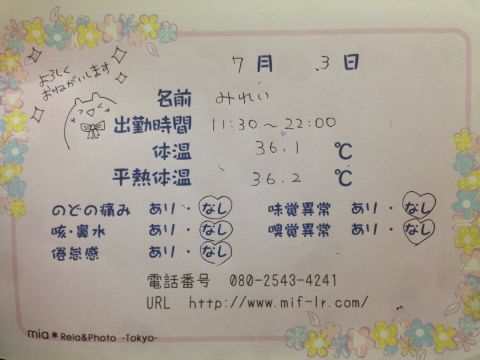 ããã«ã¡ã¯ããã¢ãªã©&ãã©ãã®ã¿ããã§ã(*'âœ'*)æ¬æ¥7/3(é)ã¯11:30ã22:00ã«ãŠå¶æ¥ããŠãããŸãðŒ