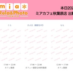 | å¶æ¥æé | âãã¢ã«ãã§æ±äº¬åºïŒã¡ã€ãã«ãã§ïŒhttp://www.mia-cafe.com/ãâ â¡å¹³æ¥ãæïœéãïŒïŒïŒïŒïŒïœïŒïŒïŒïŒïŒ â¡åæã»æ¥æã»ç¥æ¥ãïŒïŒïŒïŒïŒïœïŒïŒïŒïŒïŒ â å®äŒæ¥ããªãïŒ2019幎1æããå®äŒæ¥å»æ¢ïŒ â¡ã©ã¹ããªãŒããŒãéåºã®ïŒïŒåå ãïŒïŒïŒïŒïŒéåºã®å ŽåâïŒïŒïŒïŒïŒã©ã¹ããªãŒããŒ å¶æ¥æ¥ãåºå€ç¶æ³ã«ã€ããŠã¯ãã¡ãã http://pandaland.cutegirl.jp/mif/c_cms_csv/sch_top.php âãã¢ãªã©ïŒãã©ãæ±äº¬åºïŒæ®åœ±äŒïŒãªãã¬ïŒhttp://www.mif-lr.com/ãâ â¡å šæ¥ãïŒïŒïŒïŒïŒãïŒïŒïŒïŒïŒãã§ãããªã©ã¯ãŒãŒã·ã§ã³åºå€ã¹ã¿ãããããæé垯ã®ã¿å¶æ¥ã§ãã â å®äŒæ¥ã¯äžå®äŒïŒåºå€ã¹ã¿ãããããæé垯ã®å¶æ¥ïŒ â¡æçµåä»ãéåºã®ïŒïŒåå ãïŒïŒïŒïŒïŒéåºã®å ŽåâïŒïŒïŒïŒïŒïŒïŒïŒïŒïŒïŒè¿ã«æœè¡æéãçµããã³ãŒã¹ïŒ â»é«æ ¡çäžå¯ âæ·±å€å¶æ¥ã«ã€ããŠã¯ãå ¬åŒãµã€ãå³äžã® http://market.chu.jp/schedule1/sche37.cgi ãã¢ã°ã«ãŒãç·åã¹ã±ãžã¥ãŒã«ïŒïŒ°ïŒ£ã»ã¹ããïŒ http://market.chu.jp/schedule1/sche37.cgi?dm=1 ãã¢ã°ã«ãŒãç·åã¹ã±ãžã¥ãŒã«ïŒã¬ã©æºåž¯ïŒ ãã芧ãã ãããåç¥æ¥ã®ã¿å¶æ¥ãšãªããŸããåç¥æ¥ä»¥å€ã¯æ·±å€å¶æ¥ããããŠãããŸããã æ·±å€å¶æ¥å¯Ÿè±¡æ¥ãïŒïŒïŒïŒïŒãç¿æïŒïŒïŒïŒïŒïŒ¬ïŒïŒ¯ïŒïŒïŒïŒïŒïŒ | ||||||||||||||