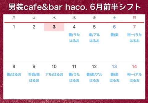 6月前半のシフトでございます🍸