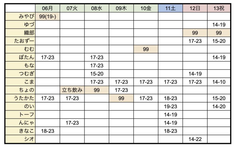 10月6日(月)〜13(月祝)までのお出迎え予定ですー