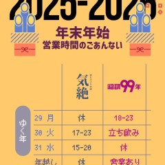 | 営業時間 | 18:00〜 | ||||||||||||||