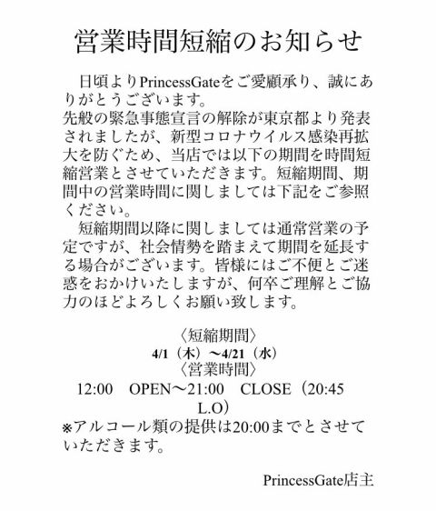 4/1~4/21までの期間についてお知らせがございます。つきましては、下記をご参照ください https://t.co/xdNGFVd6dB