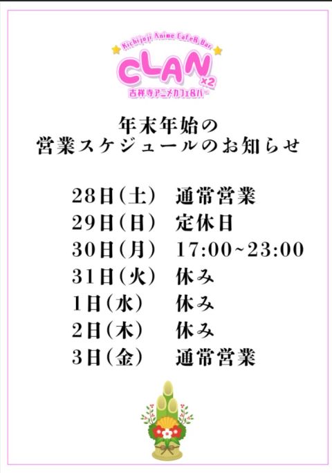 年始の営業は1/3(金)から!