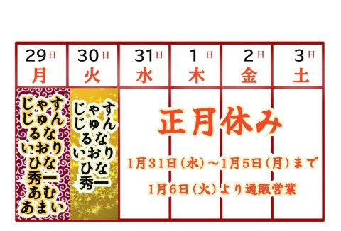æ£æäŒã¿12/31(æ°Ž)ïœ1/5(æ)6æ¥é