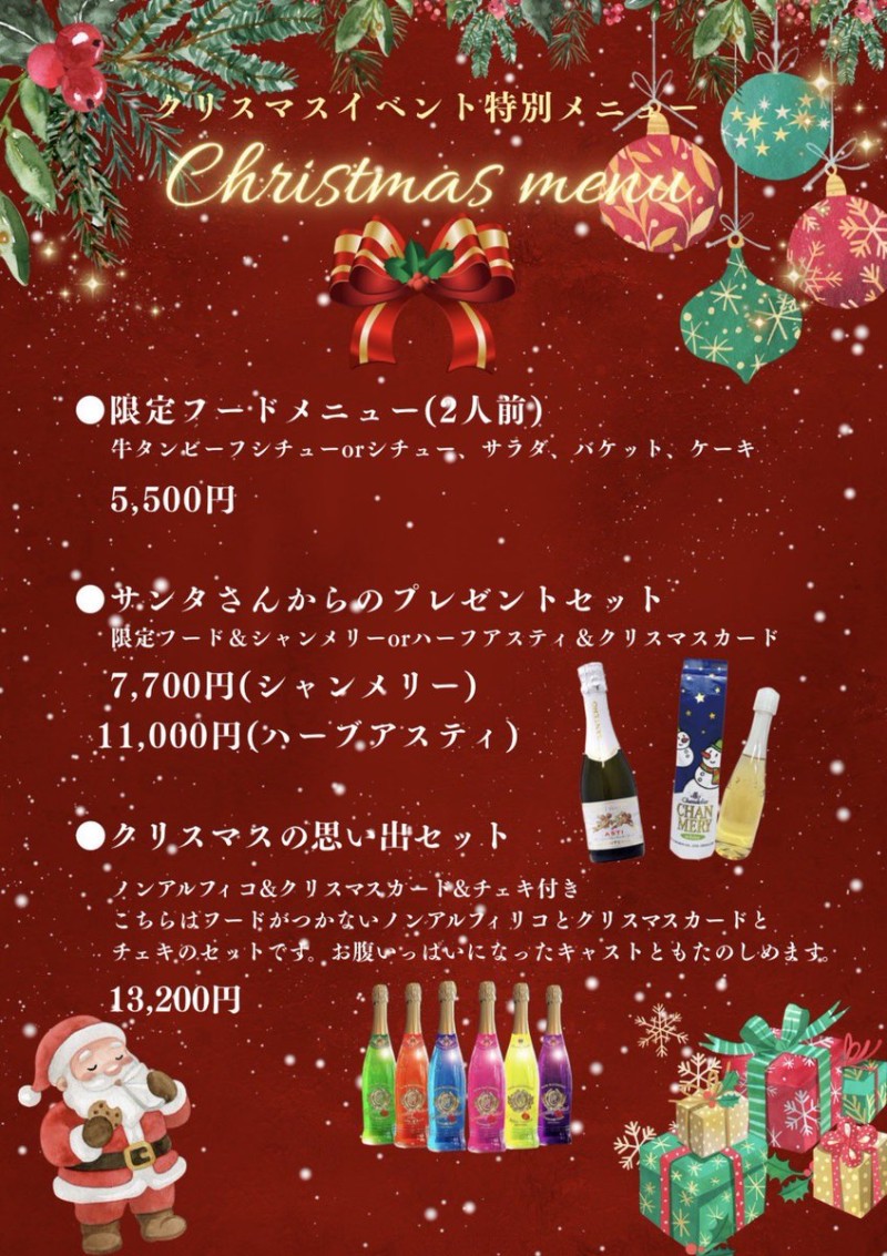 💚❤️クリスマスイベントのお知らせ❤️💚 少し早いですがクリスマスイベントの告知です! ✩期間:12/19〜12/21 ✩限定メニューあり ✩キャスト全員サンタコスプレ 今年のクリスマスフードは選べる! 牛タンビーフシチューorホワイトシチューお好きな方をお選びください🙂‍↕️🫶🏻 https://t.co/svaacfffFi
