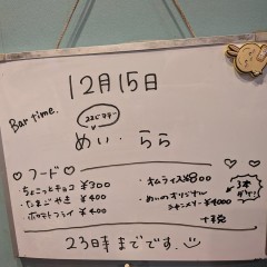 | 営業時間 | <平日> ●カフェタイム12:00〜18:00 ●バータイム18:00〜23:00 <土日祝> ●カフェタイム11:00〜18:00 ●バータイム18:00〜23:00 | ||||||||||||||