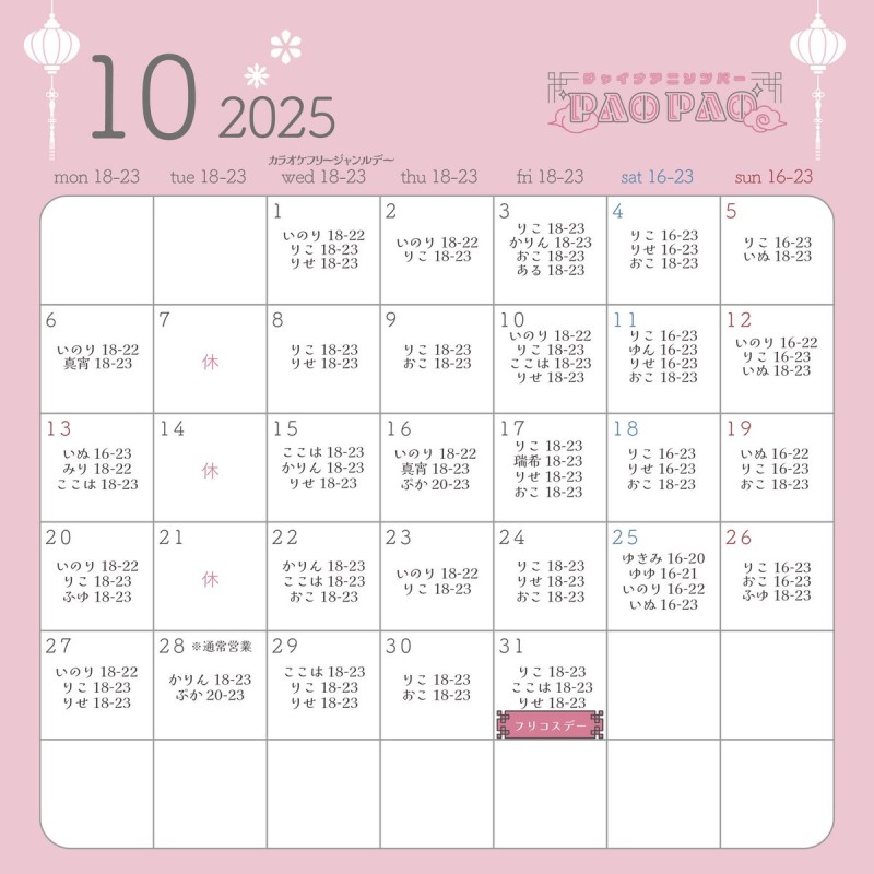 営業時間 | 【2021年7月2日オープン予定】 月曜18:00〜23:00 金曜23:00〜翌5:00 土曜23:00〜翌5:00 | ||||||||||||||