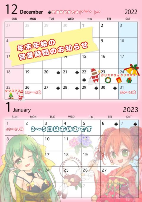 【年末年始の営業時間のお知らせ】 https://t.co/dRYk7q3eWO